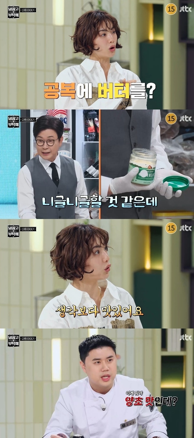 그런데 셰프들과 시청자들의 시선을 완전히 사로잡은 것은 따로 있었다. 나나가 냉장고에서 황금빛 덩어리를 꺼내 숟가락으로 한 입 떠먹는 장면이었다.